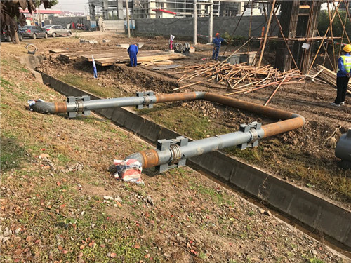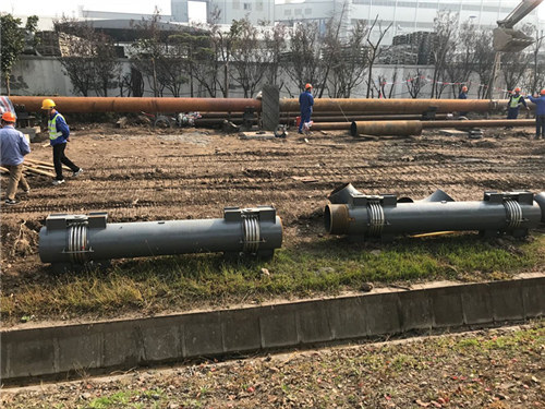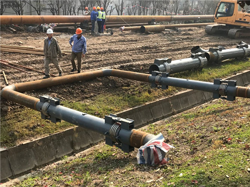 2017-11月上海金山化工區(qū)污水管道補(bǔ)償器安裝現(xiàn)場: 現(xiàn)場工人忙碌的身影 初步補(bǔ)償器管道正在連接中 現(xiàn)場工人們正安裝屬于中等不銹鋼波紋管補(bǔ)償管道 上海漢麥金屬軟管制造有限公司